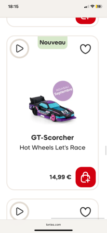 Ce produit est extrait d'une liste de cadeaux (Anniversaire, Noël, ...) déposée sur Kadolog. Kadolog permet de créer des listes de cadeaux (Anniversaire, Noël, ...) en toute liberté. Il est possible d'ajouter toutes vos envies cadeaux et de recevoir les dons directement sur votre compte. Avec les dons reçus, vous êtes alors libre d'aller acheter vos produits (comme ce 'Figurine Tonies Hot Wheels pour Toniebox ') où et quand vous le souhaitez.