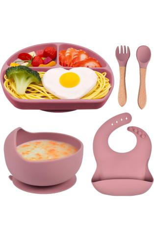FILOWA Assiette Bébé Set 5 Silicone Kit Vaisselle Sans BPA Coffrets Repas avec Ventouse Plateau Repas Bol Cuillère Fourchette Bavoir Antiderapant Ensemble Repas Assiette Set pour Enfant Fille,Rose : Amazon.com.be: Bébé et Puériculture