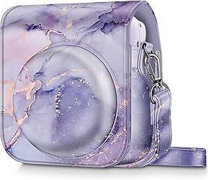 FINTIE Étui de protection pour appareil photo instantané Fujifilm Instax Mini 12 - Cuir vegan de qualité supérieure avec sangle réglable amovible, Z-Marble Lilas, Housse de protection rigide : Amazon.com.be: High-tech