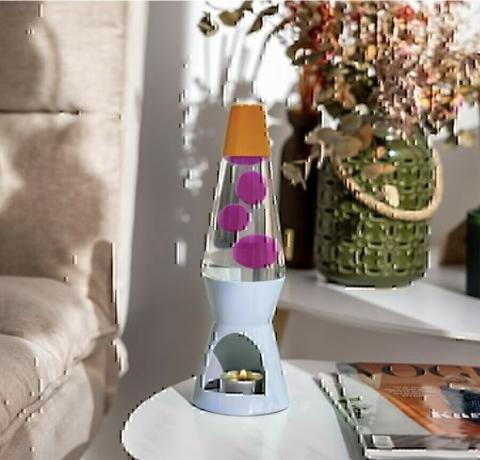 Fisura – Lampe à lave avec bougie, bleu et orange, sans électricité. Décoration écologique au design unique. Idée cadeau originale. Dimensions : 29 cm x 8,5 cm (bougie non incluse). https://amzn.eu/d/hPPTPDG