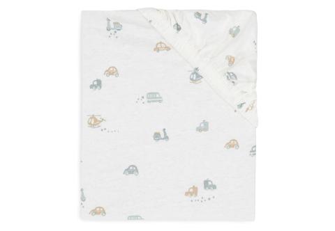 [FR] Ce drap-housse arbore un joli motif intégral avec des voitures, des scooters et des hélicoptères sur un fond couleur ivoire. Le drap-housse s'ajuste sans effort autour du matelas grâce aux bandes élastiques dans chaque coin.