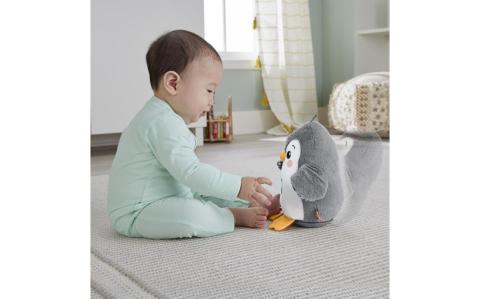 Jouer sur le ventre est encore plus chouette avec le pingouin Fisher-Price Dandinement et Battement d’ailes ! Ce doudou doux et musical répond au toucher d