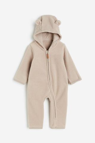 Een overall van zachte fleece om zo te dragen of als warmte-isolerende tussenlaag. Het model heeft een kap met een tricot voering en opgestikte oortjes, en een ritssluiting met kinbescherming vooraan ...