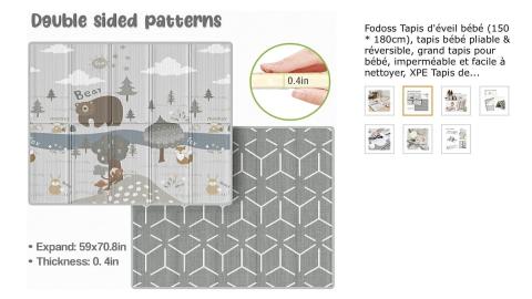 Fodoss Tapis d'éveil bébé (150 * 180cm), tapis bébé pliable & réversible, grand tapis pour bébé, imperméable et facile à nettoyer, XPE Tapis de motricité bébé