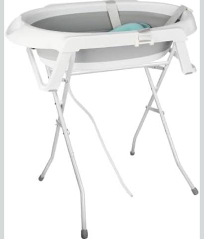 Foldable Baby Bathtub with Stand, Ergonomic Bath with Cushion, White and Pink Design, Built-in Drainage (Grey) : Amazon.com.be: Baby Products