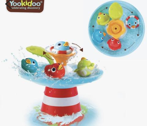 Le jouet de bain Magical Duck Race est une fontaine à eau qui pompe l’eau du bain pour la projeter au sommet en appuyant sur la feuille verte ! Quatre petits canards font la course, emportés dans le courant créé dans la vasque ! Bébé peut facilement suivre son canard favori grâce aux différentes couleurs et aux numéros du « dossard » ! Les quatre petits canards proposent un effet d’écoulement propre à chacun : par la bouche, sur le dos, en aspersion ou encore en combinaison de plusieurs trous ! Un jouet qui en amusera plus d’un !