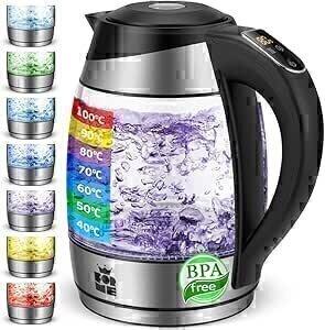 Forme Bouilloire Électrique en Verre 1,8 L Thermostat Réglable Sélection de la Température de 40-100°C I Sept Couleurs d'éclairage LED I Fonction de Maintien au Chaud I Théière I sans BPA : Amazon.fr: Cuisine et Maison