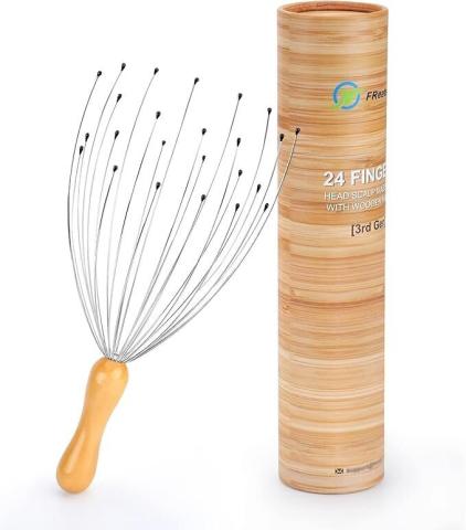 FREATECH Masseur de tête à 24 doigts avec poignée ergonomique en bois pour une relaxation profonde et un soulagement du stress, facile à tenir et à contrôler, outil de massage relaxant parfait pour le : Amazon.ca: Santé et Soins personnels