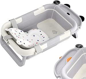 Froadp Baignoire pour bébé, pliable, avec thermomètre et coussin de support, antidérapante, portable, pour nouveau-né à 12 mois, style ours ou poulet - Gris et blanc, motif ours ou poulet : Amazon.com.be: Bébé et Puériculture