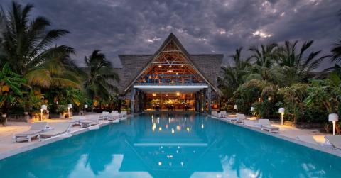 Notre hôtel à Zanzibar. Nous y passerons 6 nuits, au bord de la plage.