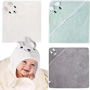 Funmo Lot de 3 serviettes à capuche pour bébé, équipement initial 80 x 80 cm, serviettes de bain pour bébé, serviette de bain pour nouveau-né, serviette de bain avec capuche, nouveau-né à partir de 0 : Amazon.com.be: Bébé et Puériculture