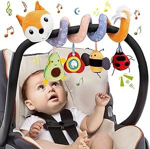 Funsland Jouet de poussette pour bébé, jouet de nacelle, jouet en spirale d'éléphant bébé, jouet suspendu avec cloche sonnette, cadeaux pour 0-12