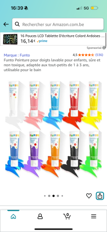 Ce produit est extrait d'une liste de cadeaux (Anniversaire, Noël, ...) déposée sur Kadolog. Kadolog permet de créer des listes de cadeaux (Anniversaire, Noël, ...) en toute liberté. Il est possible d'ajouter toutes vos envies cadeaux et de recevoir les dons directement sur votre compte. Avec les dons reçus, vous êtes alors libre d'aller acheter vos produits (comme ce 'Funto Washable Finger Paint for Kids, Safe and Non-Toxic, Suitable for Toddlers 1-3 Years, Bath Use : Amazon.com.be: Office Products ') où et quand vous le souhaitez.