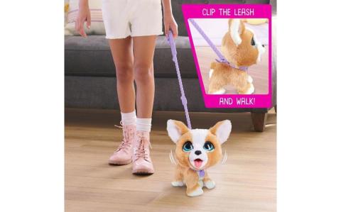 De schattige PoopALots Corgi heeft een superzachte bruin-witte vacht, sprankelende blauwe ogen en een paarse halsband. Corgi is niet alleen schattig, maar