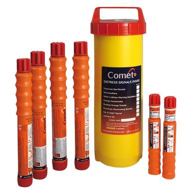 Composé de 4 feux à mains dans une mallette de stockage étanche en plastique. Dernier recourt, on n'est jamais vraiment trop prudent.