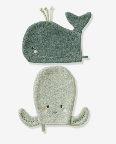 Des gants de toilette super fun pour donner le bain à bébé Louis