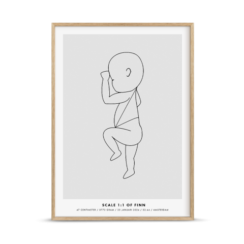 Geboorteposter Line Art - Babydruk | Birth Poster 1:1 Scale | Original Gift | Free Shipping