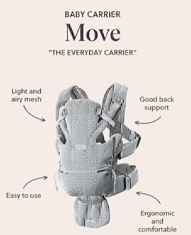 Discover ergonomic Baby Carrier Move in mesh with excellent hip & back support for longer babywearing sessions. Suitable 0–15 months. Comfy for you & your baby!