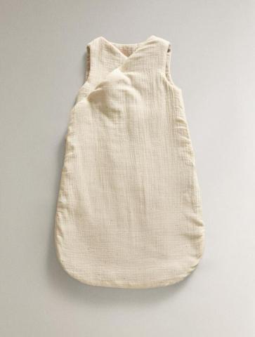 Gigoteuse bébé confectionnée en coton avec motifs de lune. Fermeture zippée latérale et boutons.