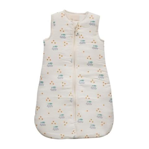 Une gigoteuse écrue de rêves avec des petits motifs poissons et étoiles !
