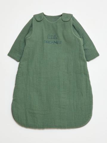 Offrez à votre bébé des nuits douces et paisibles avec cette gigoteuse brodée.- Gigoteuse en gaze de coton - Manches longues amovibles par pressions - Encolure ronde - Epaules pressionnées - Ouverture zippée sur le côté - Message brodé devant - Indice de chaleur TOG 2,5 (pièces chauffées, 18 à 22°)