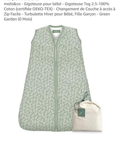 molis&co - Gigoteuse pour bébé - Gigoteuse Tog 2.5-100% Coton (certifiée OEKO-TEX) - Changement de Couche à accès à Zip Facile - Turbulette Hiver pour Bébé, Fille Garçon - Green Garden (0 Mois)