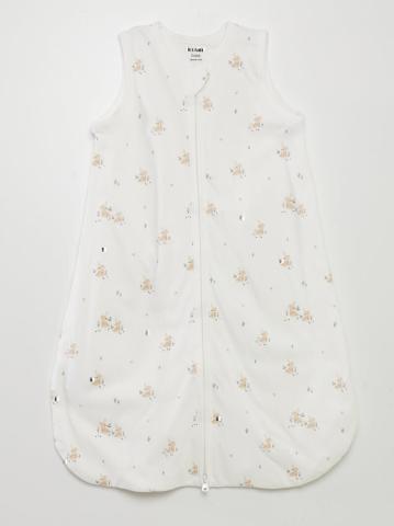Cette gigoteuse en coton est idéale pour les températures plutôt chaudes. - Gigoteuse légère - TOG 0.5 (entre 22 et 27 degrés) - Ouverture zippée avec protège menton - Col rond - Sans manches - Imprimé all-over