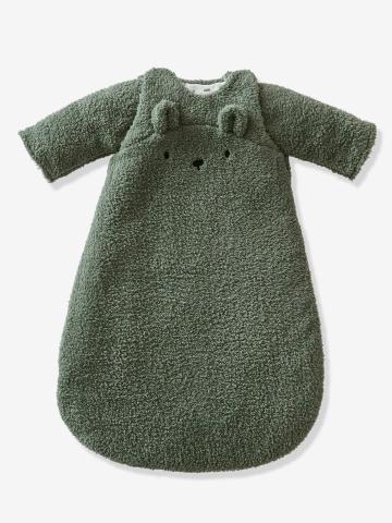 Gigoteuse manches amovibles en polaire Ours GREEN FOREST vert sauge - Douillette et tellement craquante, la gigoteuse Ours Green Forest promet de doux dodos à bébé. Ouatinée et bien chaude, elle est idéale pour l'hiver et les nuit