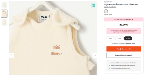 en toute liberté. Il est possible d'ajouter toutes vos envies cadeaux et de recevoir les dons directement sur votre compte. Avec les dons reçus, vous êtes alors libre d'aller acheter vos produits (comme ce 'Gigoteuse mixte en coton bio écrue - whisper white | Tape à l'oeil