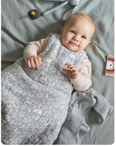 Comme une jolie balade en forêt, la gigoteuse Dans les bois transporte bébé vers un doux sommeil. Des motifs apaisants et un indice de chaleur 2,5 pour le couvrir de tendresse, idéalement à la mi-saison.