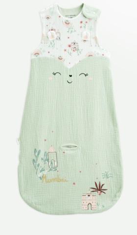 En coton gaufré tout doux et dans de jolis coloris, cette gigoteuse a une ouverture à l'entrejambe : idéal pour faire passer la ceinture du siège auto.