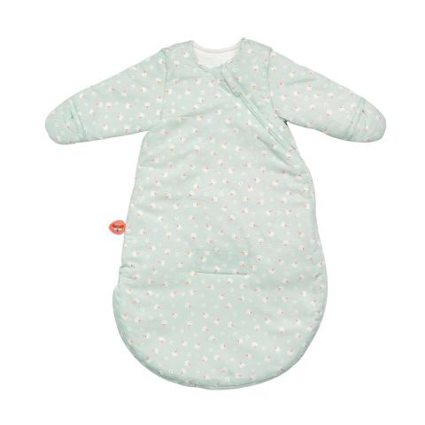 Cette belle gigoteuse avec des moufles amovibles Mila, Lana et Zoe avec un motif de fleurs brodé offre à votre enfant une sensation de confort absolu pendant son sommeil. Le tissu extérieur en polyester doux et le tissu intérieur en coton respirant garantissent que votre enfant ne soit ni trop chaud ni trop froid la nuit. Idéal pour l'hiver et les jours plus froids. La gigoteuse est équipée d'une fermeture éclair pratique sur le côté qui s'ouvre de bas en haut. Ainsi, votre bébé ne peut pas ouvrir la gigoteuse, et vous pouvez facilement changer les couches et laver votre enfant. Avec une longueur de 60 cm, cette gigoteuse convient aux bébés de 0 à 3 mois