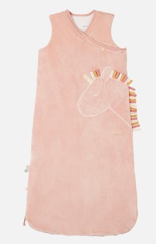 La gigoteuse 6-36m (90-110 cm) en Veloudoux rose de la collection Lina & Joy, entièrement doublée de jersey écru, gardera bébé au chaud pendant son sommeil.