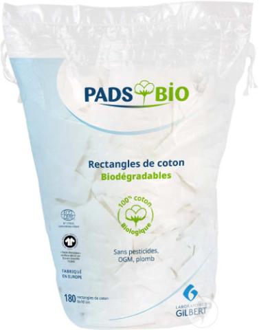 Les Pads Bio, rectangles de coton 8 x 10 cm, comportent 2 faces non tissées pour une extrême douceur. 100% coton biodégradable, ils permettent le nettoyage du siège de bébé ou le démaquillage. Ils sont compactés et ne peluchent pas. Ce sont les seuls Pads en qualité Bio. De plus ils sont certifiés ecocert et gots. Ils sont donc sans pesticides, sans OGM ni plomb. Fabriqué en Europe, sans blanchiment au chlore.