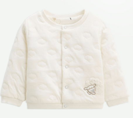 Naissance - Tout doux et léger, ce gilet enveloppe bébé de confort dès ses premiers jours. Ses petits nuages dessinés apportent une touche délicate à ce basique essentiel