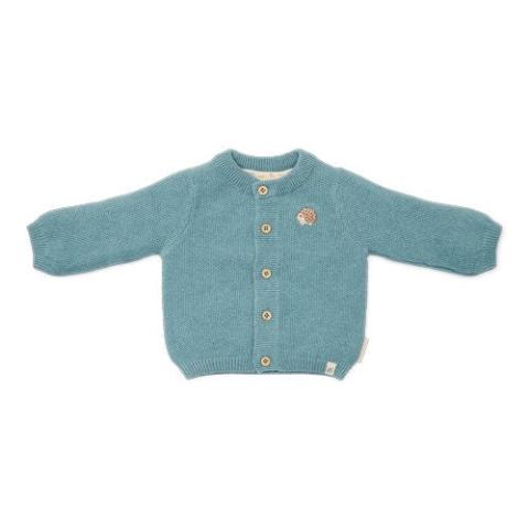 Hé là, Baby Blue Beauty ! Enveloppez votre petit(e) dans la chaleur et le style avec ce gilet tricoté. Fabriqué en tricot bleu chiné doux, ce gilet offre chaleur et confort pour votre petit bébé. Le charmant motif brodé d'un hérisson sur la poitrine ajoute une couche supplémentaire d'enchantement. Le gilet est fabriqué en coton biologique et se ferme avec des boutons à l'aspect bois. Parfait pour être porté comme une couche chaude supplémentaire.