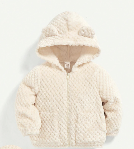 Cozy Cub Baby Girl 3D Ear Design Hooded Zipper Up Thermal Lined Jacket | SHEIN EUQS