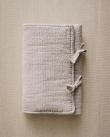 Baby changing mat made of soft seersucker cotton with a gingham design. Lace-up fastening.