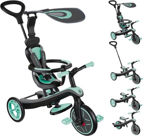 Globber Trottinette 632-206 4 en 1 pour enfants avec harnais et siège réglable.