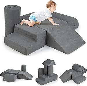 GOPLUS 6 PCS Parcours de Motricité Bébé, Module Motricité Bébé en Mousse Haute Densité 30D, Housse en Tissu Chenille& Poignées, Jouets Montessori Convient pour Enfants 1-10 Ans : Amazon.com.be: Jouets
