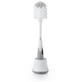 Le goupillon avec support de la marque Oxo Tot s'adapte à tous les biberons sur le marché.