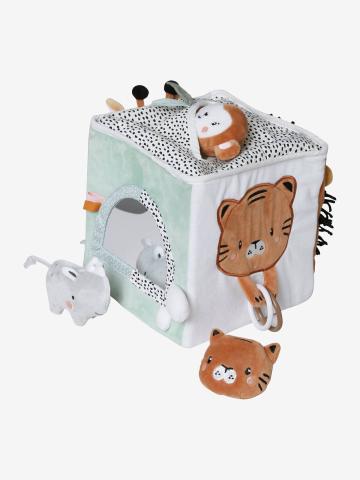 Ce joli cube d'activités n'en a pas fini d'amuser bébé ! Miroir, textures différentes, jeux sur le thème de la jungle... en avant les découvertes ! 6 faces avec activités et dé