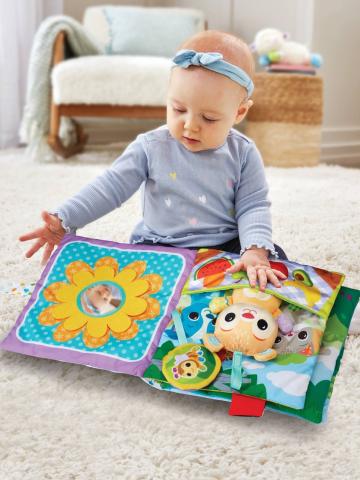 Le premier livre en tissu de Bébé avec un ourson interactif pour bien s’amuser. Ce grand livre entièrement en tissu
