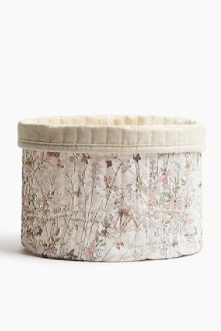 DISNEYxSANDERSON H&MHOME. Panier de rangement rond en tissu de coton matelassé avec imprimé all-over. Modèle avec bord replié en haut. Plongez avec nostalgie dans vos souvenirs d'enfance en explorant le monde magique de Disney. Laissez-vous séduire par les gentils personnages familiers qui peuplent les imprimés fantaisistes de Sanderson, la célèbre marque britannique de papiers peints et de tissus. Hauteur 25 cm. Diamètre 30 cm.