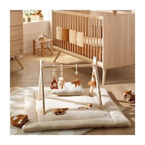 Le grand tapis réversible en double gaze de coton couleur vanille, de la collection Les Unis est idéal pour laisser bébé s'éveiller avec ses jouets préférés, il développera ses différents sens. Placez le tapis au sol et regardez bébé améliorer sa motricité dans le plus grand confort.