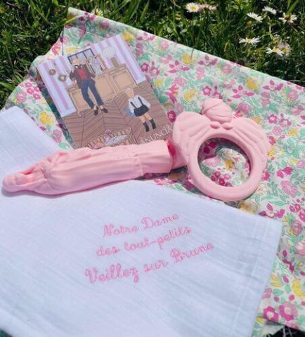 Retrouvez dans ce coffret "Gratia Plena", une vierge de la couleur de votre choix, associée à un hochet "Mon bon Ange" et un lange brodé, en coton, personnalisé "Notre Dame des touts petits Veillez sur ....". Il ne vous reste plus qu'à y ajouter le prénom souhaité... (Spoiler alert Jeroboam n'est pas le nom final ;-))