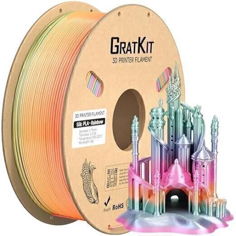 GratKit Rainbow PLA Filament with Silk Gloss 1.75 mm, 1 kg Spool, Colour Changing 3D Printer Silk Filament with +/-0.03 mm Precision, Even Winding, Candy Rainbow PLA, 1000 g : Amazon.de: Business, Industry & Science