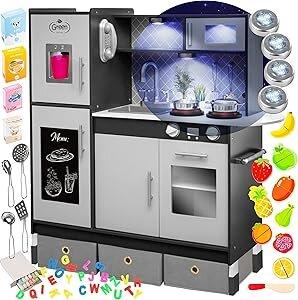 Green series Grande Cuisine en Bois Enfant - Accessoires, éclairage LED, Hauteur de 83 cm, du Sol au Plan de Travail ; c’est 46 cm, Cuisine Enfant en Bois, Couleur Grise (GS0057-1) : Amazon.com.be: Cuisine et maison