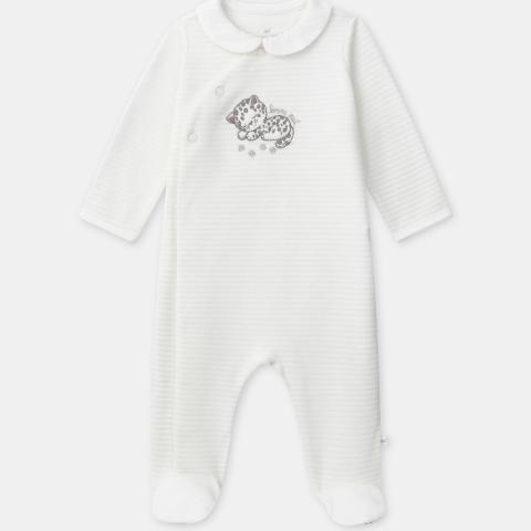 Conçue pour un bébé bien au chaud, cette grenouillère s’adapte aux nuits d’hiver. Réalisée en velours de coton biologique et polyester recyclé, elle est pratique avec ses pressions. Les broderies et le motif panthère des neiges apportent une touche tendre et protectrice.