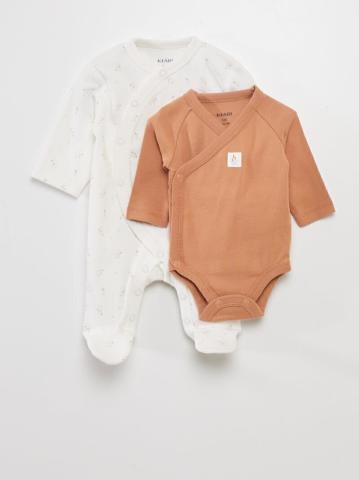 Voici un set idéal pour les nouveaux nés - En coton - Ouverture à pressions devant - Manches longues avec moufles en revers - Pieds intégrés - Body - Forme croisée - Ouverture à pressions à l'entrejambe et sur les côtés